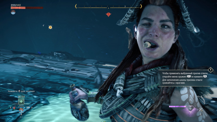 Зато в остальном Forbidden West крайне дружелюбна к игроку — возможно, даже слишком дружелюбна. Можно буквально отключить голову и просто делать всё подряд. Если у вас нет нужного апгрейда, чтобы пройти конкретное место, игра об этом предупредит. Если вы застрянете, она прямо подскажет, что нужно дальше. Да и вообще если где-то в поле зрения есть какой-нибудь интерактивный объект окружения, он приблизит вас к победе. Авторы сделали всё для того, чтобы вам было удобно: игра практически ничего от вас не требует. Сложность тут могут представлять только бои.