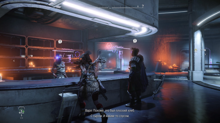 Впрочем, без заметных технических огрехов игра всё же не обошлась. Больше всего бросается в глаза то, что разработчики не смогли заставить персонажей в диалогах смотреть друг на друга: они постоянно отводят взгляд вверх и пялятся куда-то в небо. Противники (включая тех, что нужно убить по заданию) периодически проваливаются сквозь землю, а Элой застревает в анимациях. Один раз игра зависла на загрузке быстрого сохранения — никакие перезапуски не помогали. К счастью, под рукой было резервное (ручное) сохранение, отбросившее не так уж и далеко назад, но это мне повезло. Хотя на столь критический баг за всё прохождение лично я наткнулся только один раз.
